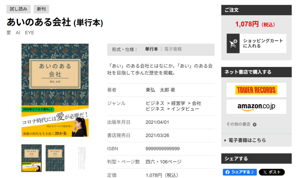 管理画面の ホームページ表示管理 > 外部書店 > ネット書店 ページで「タワーレコード オンライン」を