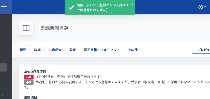 書誌登録で、紙版、電子版、文庫版、オンデマンド版など、同タイトルの書目で複数のフォーマット商品を登録する必要がある際や、お知らせ登録で、ランキングなど同じ形式のお知らせを毎月更新したい場合に便利な機能です。