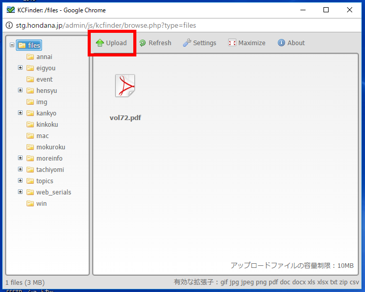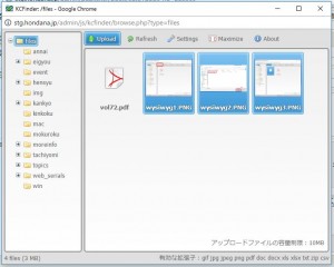 『ファイルの管理』ボタンをクリックすると、ファイルの管理画面が開きます。